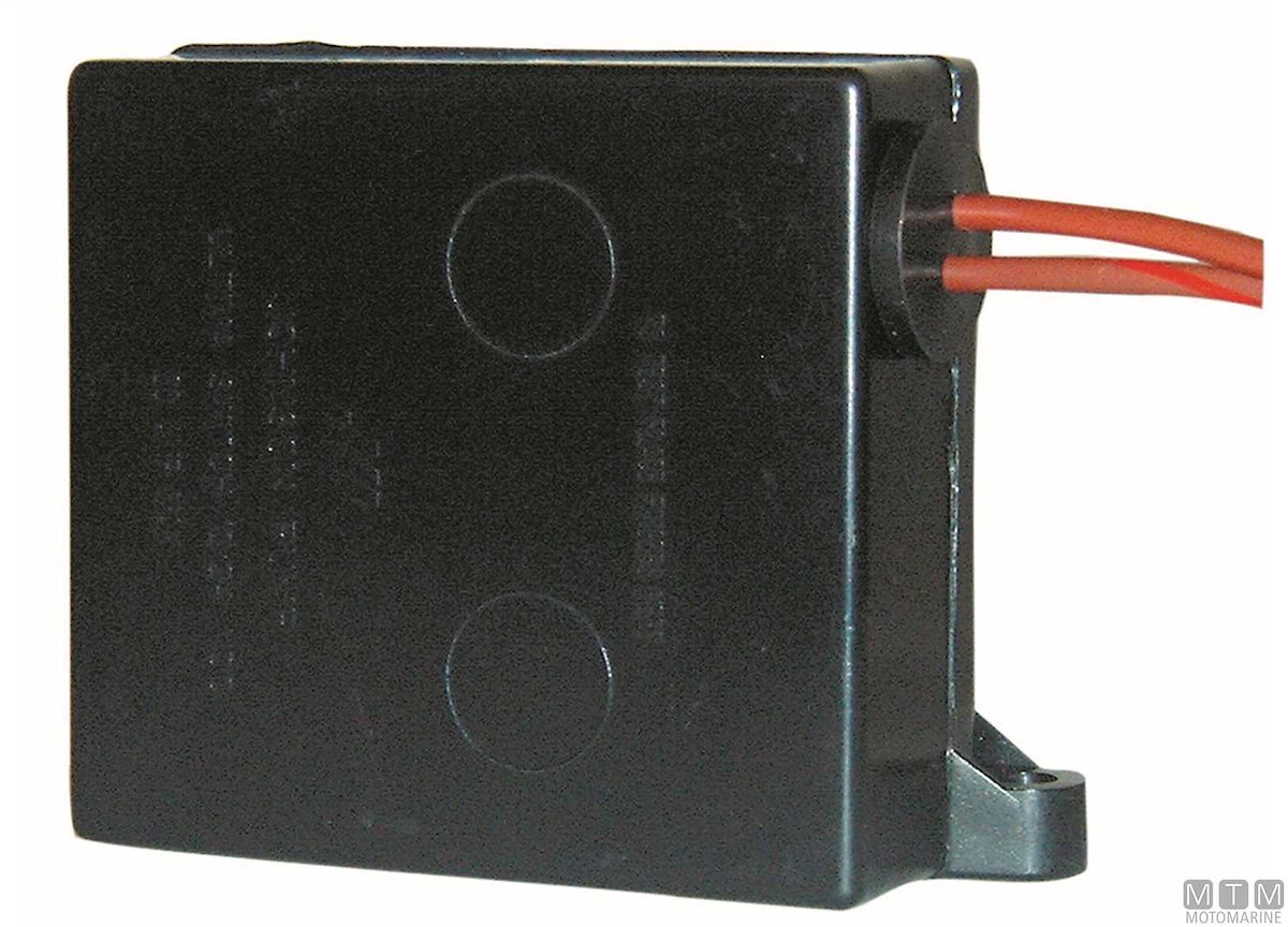 Interruttore elettronico universale Johnson per pompe di sentina 12/24V. Senza usura, privo di parti meccaniche in movimento, impermeabile. Dim: 85 x 67 x 29 mm