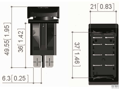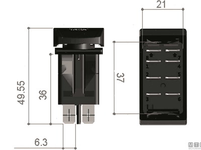 Interruttori basculanti 12/24V (20/10A) impermeabili IP68 con guarnizione in Nitrile. Bascula con simboli e testo incisi a Laser, non si usura e non necessita di etichette.