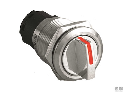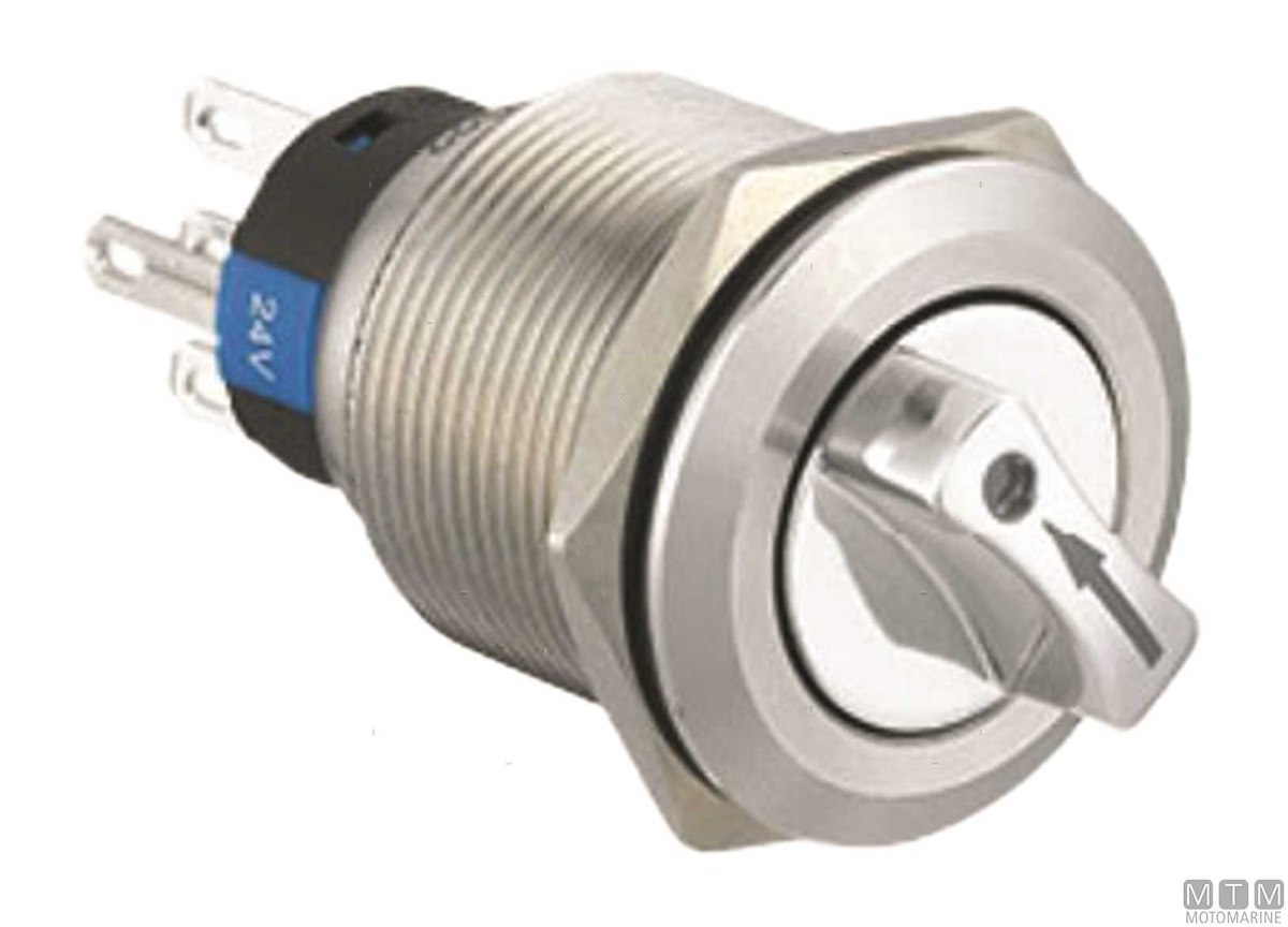 Interruttore con selettore rotativo 12V impermeabile IP67 con luce LED e corpo in Acciaio Inox. Montaggio a filo con foro da 19 mm. Altezza incasso 38 mm.