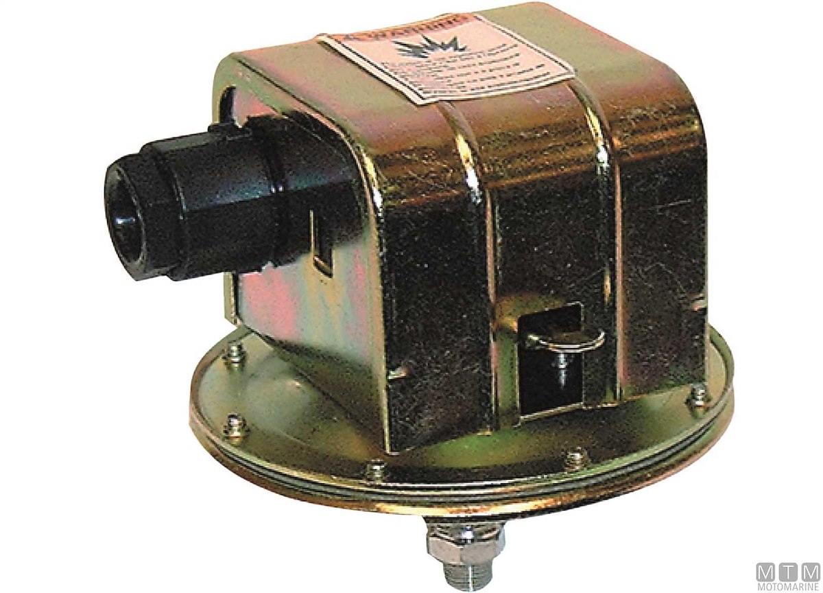 L’interruttore pressostato viene usato per l'operazione di spegnimento automatico per evitare danni alla pompa. Funziona con tutte le pompe autoadescanti a girante e viene utilizzato per il pompaggio/svuotamento dei serbatoi di sentina per evitare che la pompa lavori a secco. Spegne automaticamente la pompa quando la sentina o il serbatoio sono asciutti. Con l'interruttore montato, è possibile avviare la pompa tramite un pulsante remoto oppure manualmente premendo una levetta sull'interruttore pressostato.