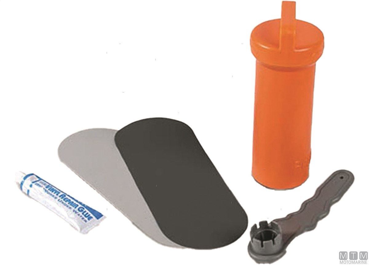 Kit riparazione rapido per sup Jobe Aero. Comprende pezze in PVC in 13 colori, 1 tubetto di colla e una chiavetta.