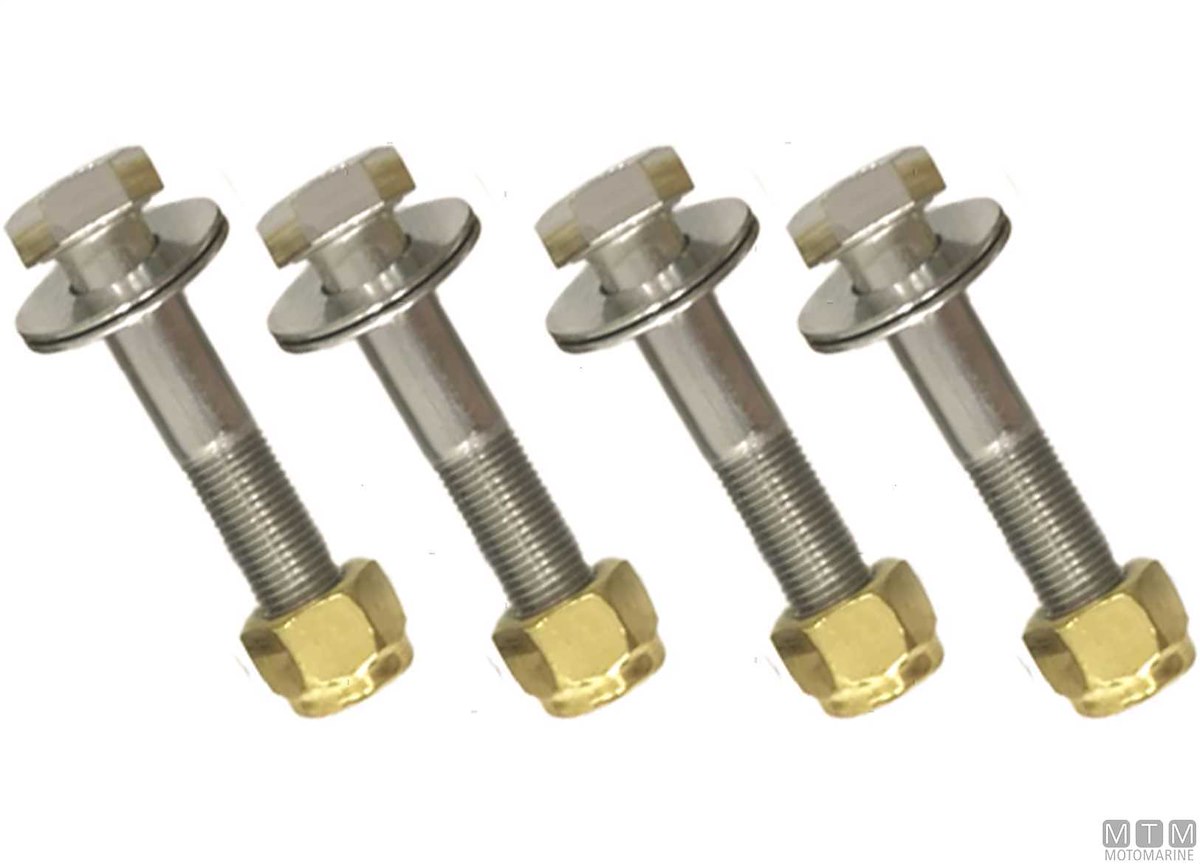 Kit bulloni fissaggio in Acciaio Inox High-Torque per elevatori e piastre per motori fuoribordo. Contiene 4 bulloni, 4 dadi autobloccanti e 4 rondelle. Dimensioni 1/2"-20 x 2-3/4".
