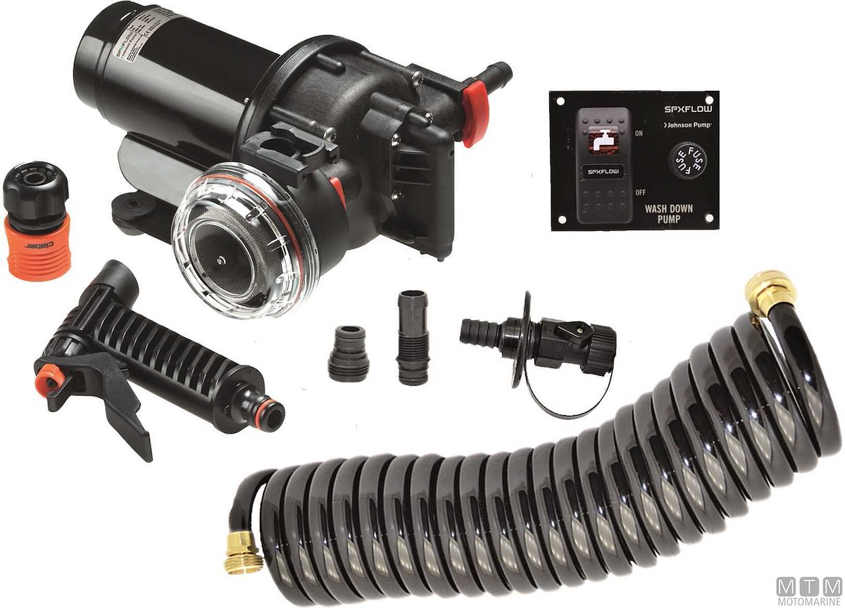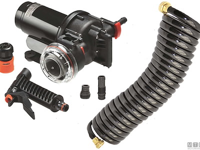 Kit pompa lavaggio Aqua Jet 3.5 per lavaggio ponte, tender, sentina, automobili etc. Completo di pistola, tubo, filtro e raccordi portagomma 14/20 mm.