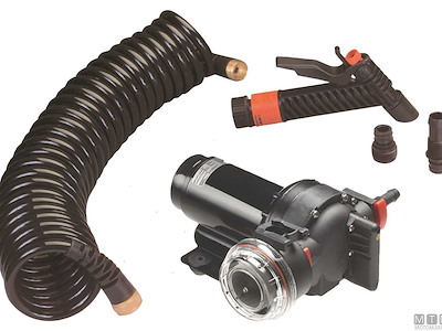 Kit pompa lavaggio Aqua Jet 5.2 per lavaggio ponte, tender, sentina, automobili etc. Completo di pistola, tubo, filtro e raccordi portagomma 14/20 mm.