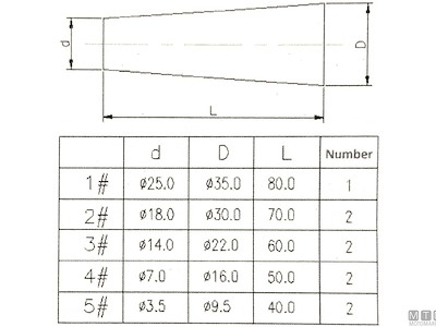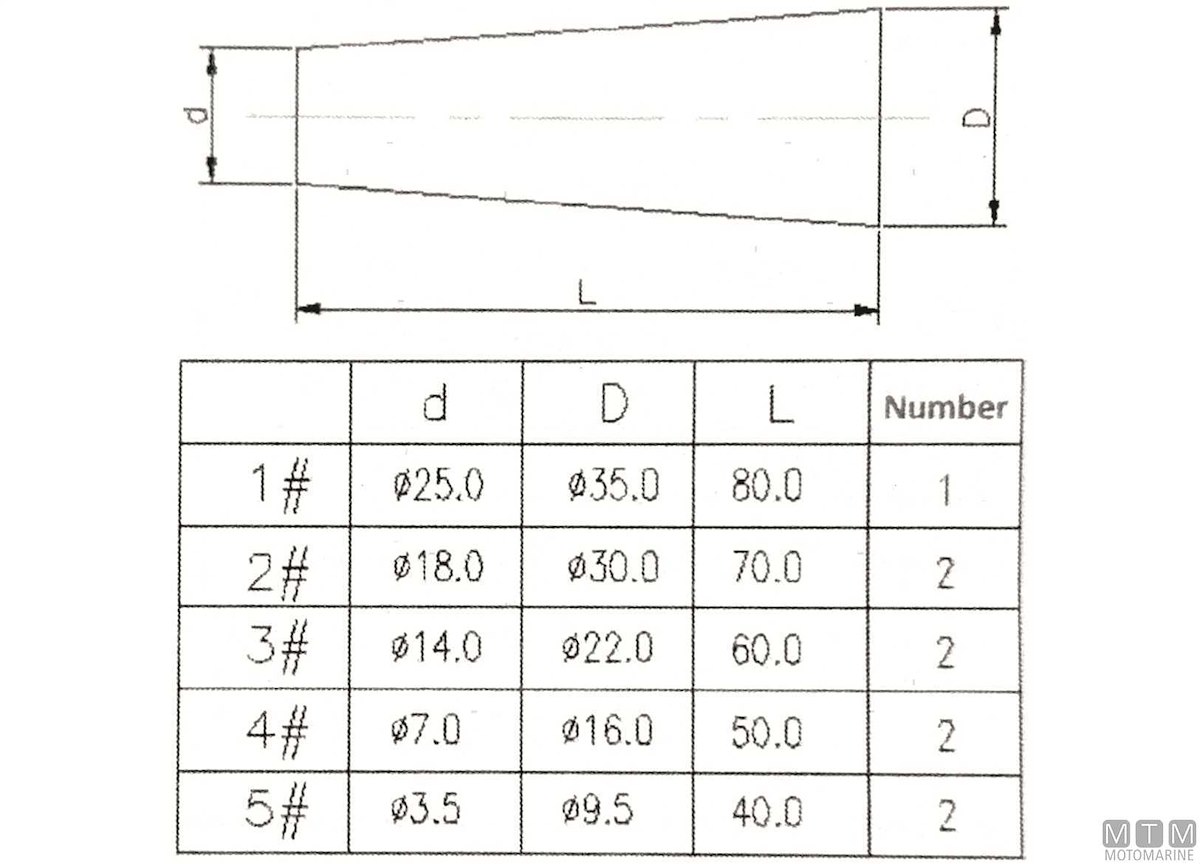 Serie di 9 tappi conici in legno per falle da 3,5 a 35 mm di diametro.