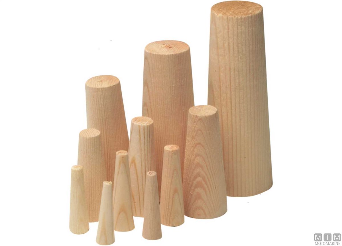 Serie di 10 tappi conici in legno per falle da 8 a 38 mm di diametro.