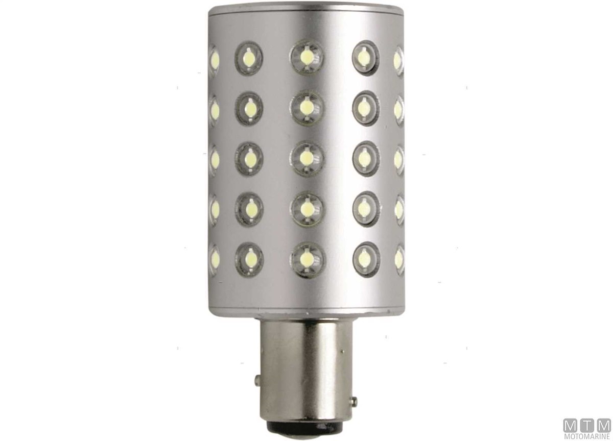 Lampadina LED rinforzata bipolare stagna BAY15D con perni non paralleli. Consumo minimo (3W) per una resa luce di 25W. Per fanali di navigazione di imbarcazioni oltre i 12 m.