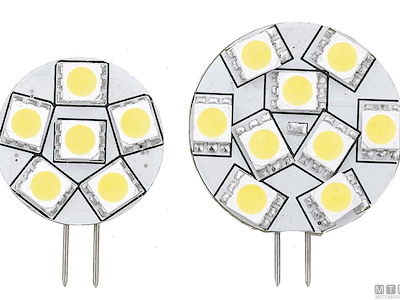 Lampadine LED con attacco G4 laterale oppure posteriore. Consumi minimi e lunga durata.Luce bianca calda 3000°K.