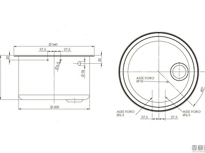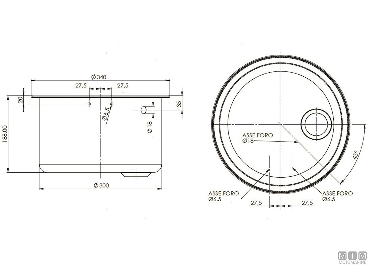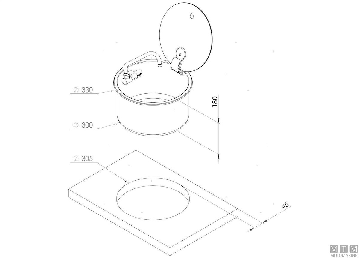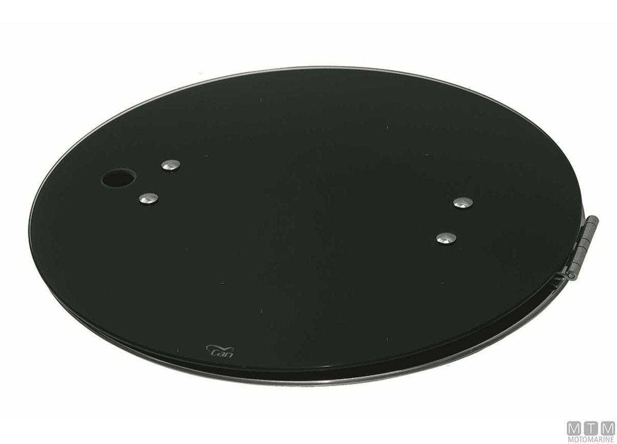 Lavello tondo con coperchio in Vetro temperato e vasca in Acciaio Inox 18/8. Completo di rubinetto pieghevole, da completare con piletta ø 50 mm.