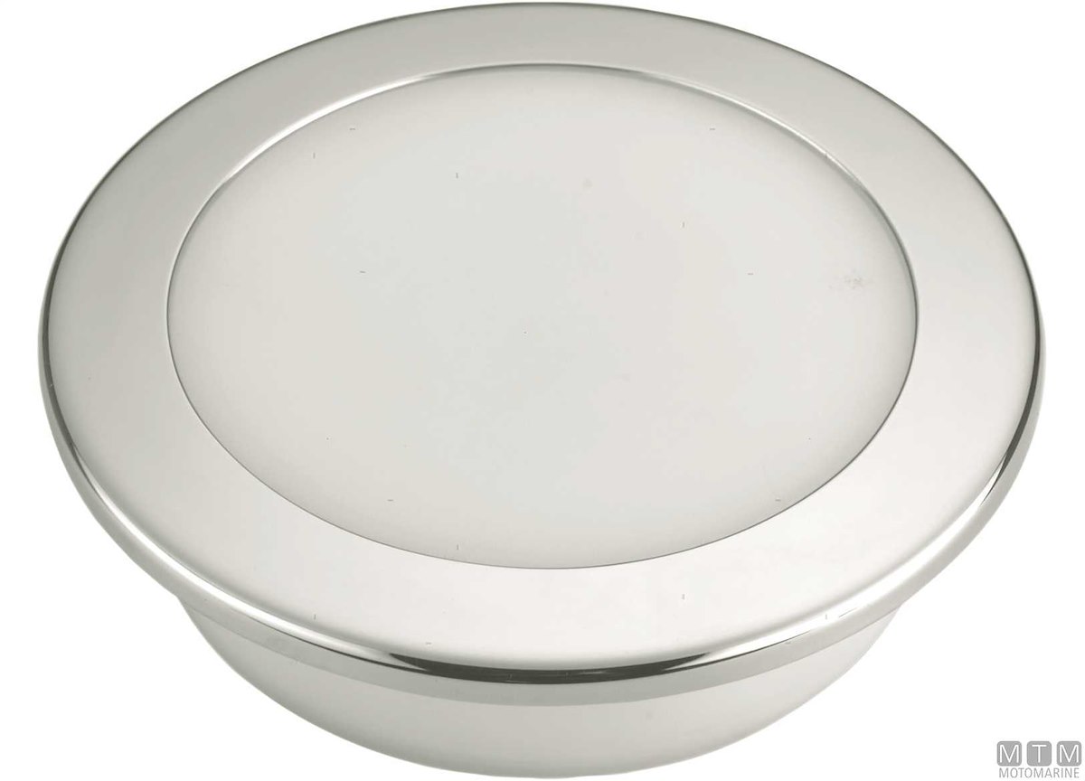 Plafoniera LED 12V dimmerabile impermeabile IP67 con cornice in Acciaio Inox.