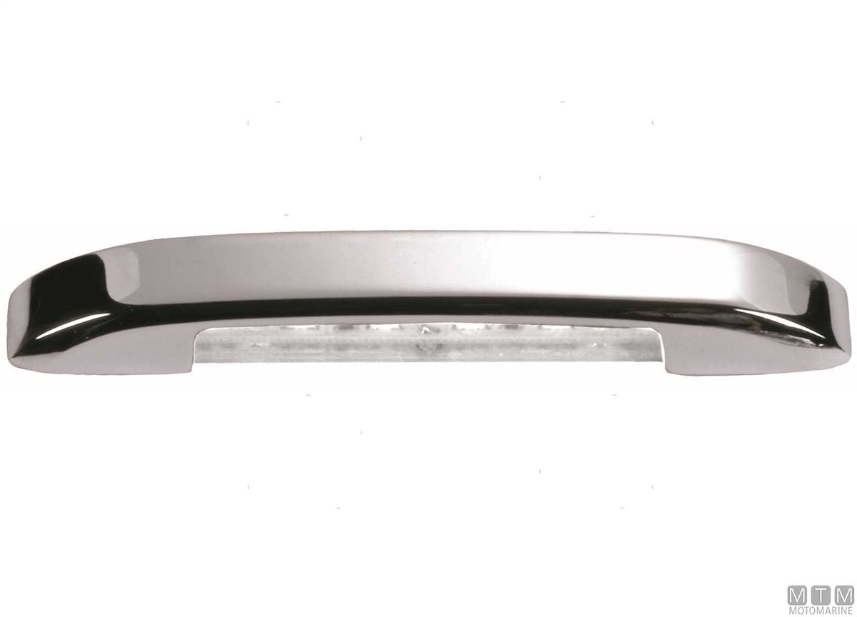 Luce LED impermeabile (IP67) per interni ed esterni. Montaggio verticale o orizzontale. Corpo in Ottone Cromato, viti in Acciaio Inox. Voltaggio universale 12/24V. Luce bianca naturale 4000°K a due direzioni, verso il basso e verso l'alto