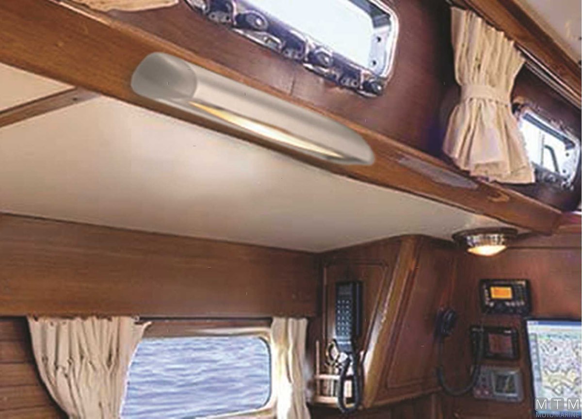 Luce LED 10-28V con corpo in Alluminio impermeabile IP67 con montaggio a superficie.Luce bianca, consumo 6WDimensioni 276,3 x 25 x H35 mm
