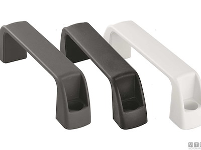 Maniglie corte (14 cm) in Plastica rinforzata. Montaggio con viti a vista. Interasse viti 117mm.