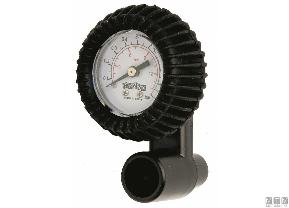 Manometro universale per gonfiatori. Permette il controllo della pressione durante il gonfiaggio oppure direttamente sulla valvola del gonfiabile.