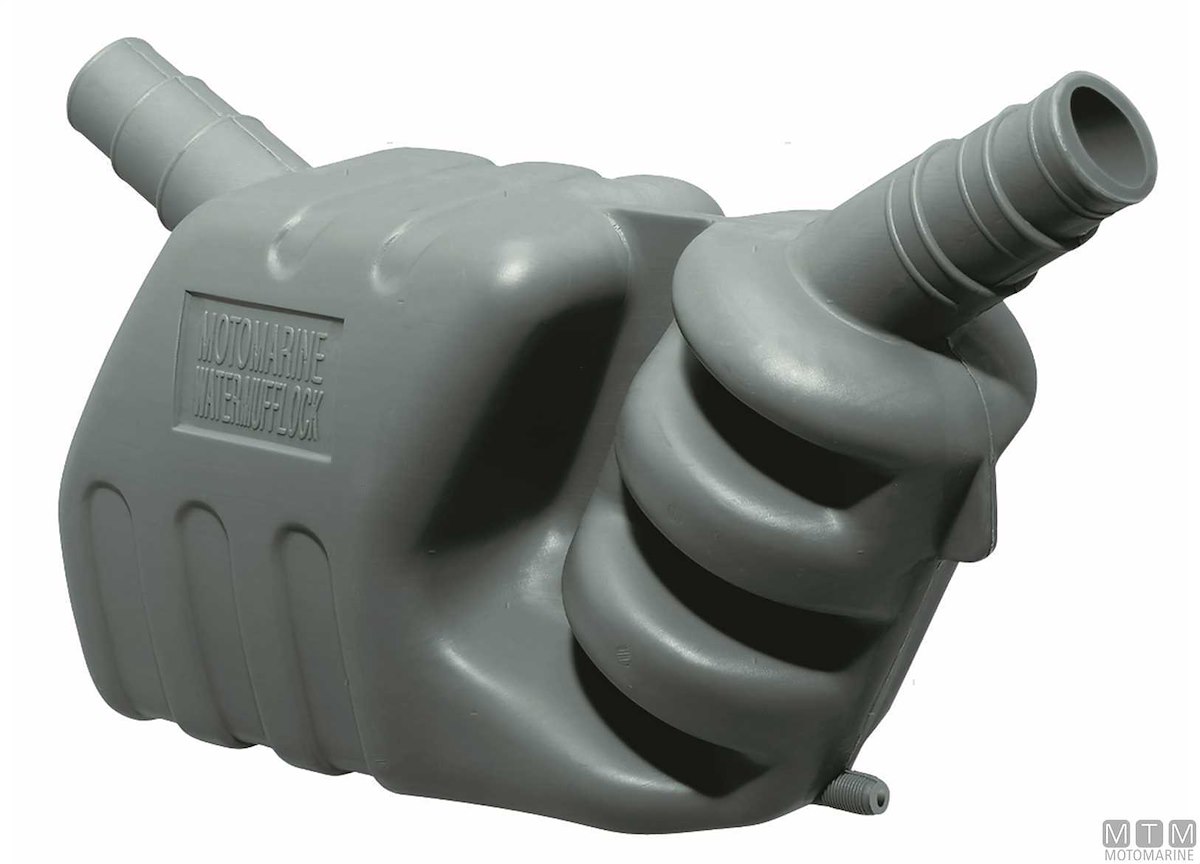 Marmitta silenziata per motori diesel.Impedisce all'acqua di rifluire lungo la linea di scarico verso il motore quando viene spento.Per tubi di scarico da 40/45/50 mm. CapacitĂ : 7 litri.