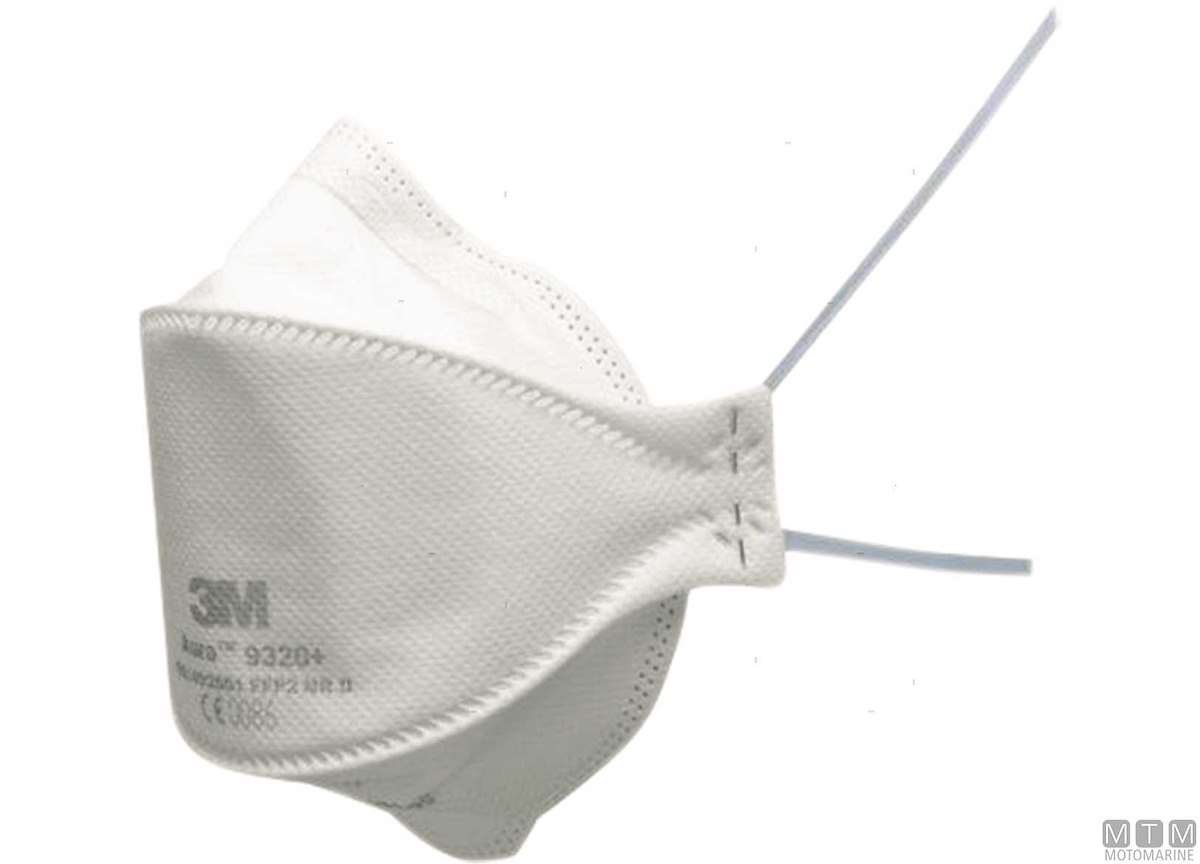 Mascherina 3M Aura 9300+ Comfort per polveri sottili, olii e nebbie provvista di filtrante Electret con speciale desing a tre strati per una migliore adattabilità e facilità nel parlare e con strato interno in tessuto per un maggiore comfort. Dotata di stringinaso e doppio elastico. A norma EN149:2001 CE.