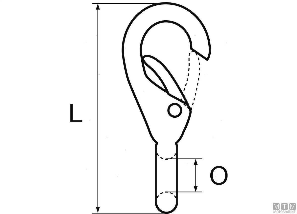 Moschettone in Acciaio Inox AISI 316 con occhio fisso.