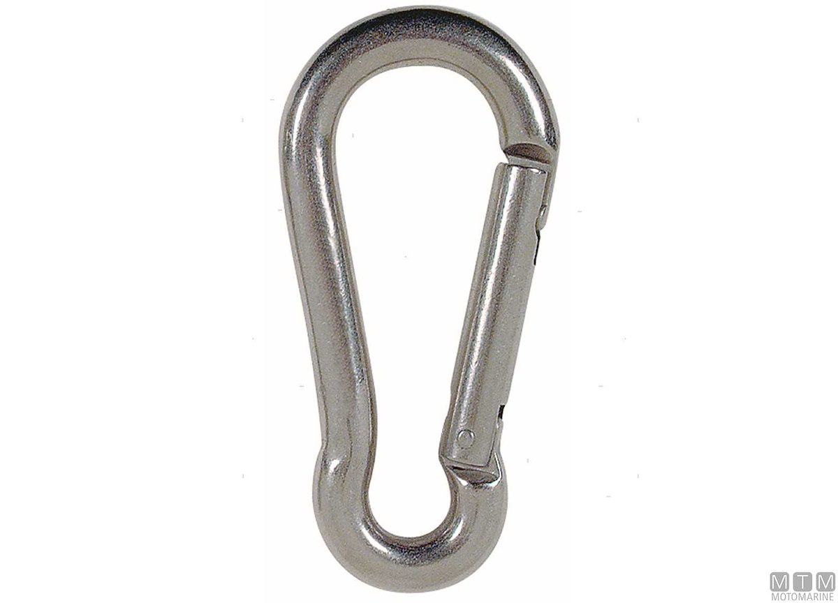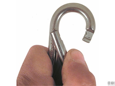 Moschettone in Acciaio Inox AISI 316 con grande apertura laterale. Sistema di aggancio antigrip. Non impiglia le cime.