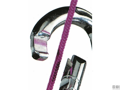Moschettone in Acciaio Inox AISI 316 con grande apertura. Sistema di aggancio antigrip. Non impiglia le cime.