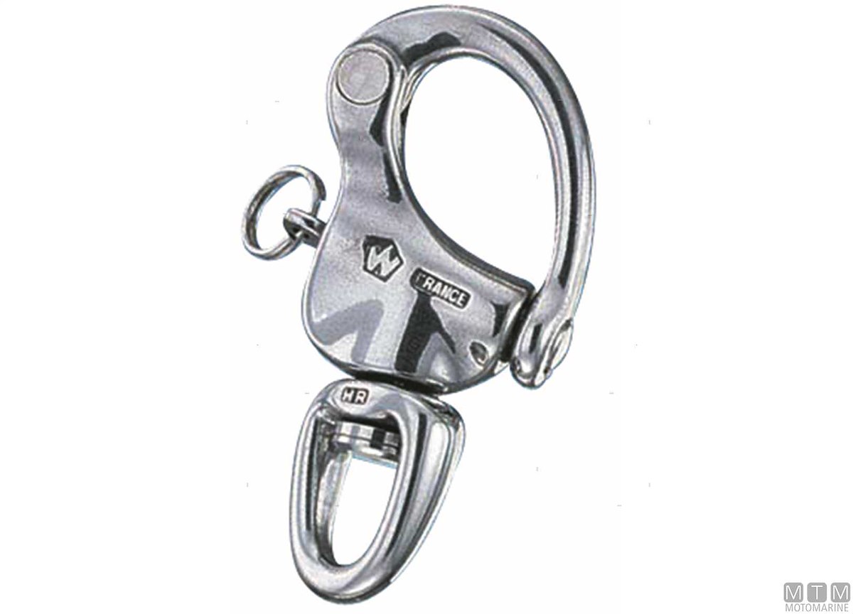 Moschettone sgancio rapido Wichard in Acciaio Inox AISI 316 forgiato con occhio girevole. Testato e garantito nel carico di rottura (BL).