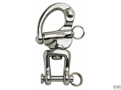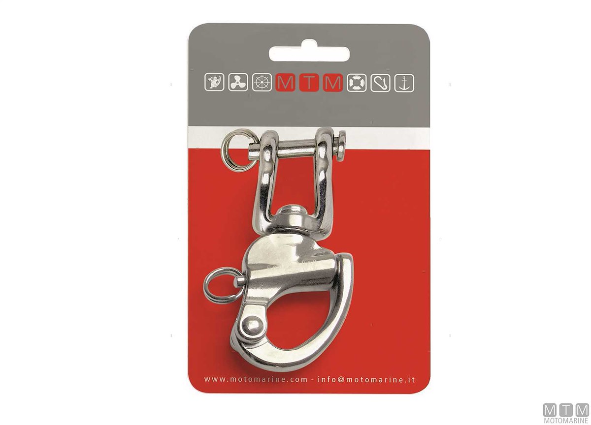 Moschettone sgancio rapido con grillo girevole in Acciaio Inox AISI 316 di grado superiore. Controllo e finitura per il duro uso in mare. Fornito su elegante Card da esposizione. Testato e garantito nel carico di lavoro (WL). Il carico di rottura (BL) è 4 volte il carico di lavoro.