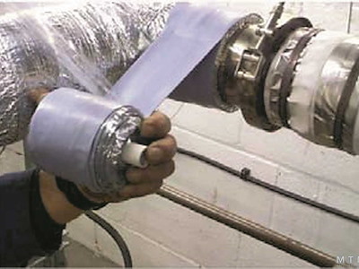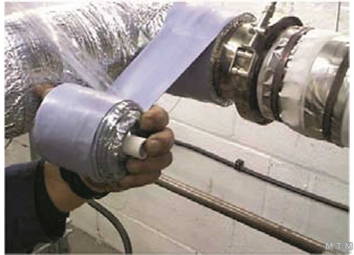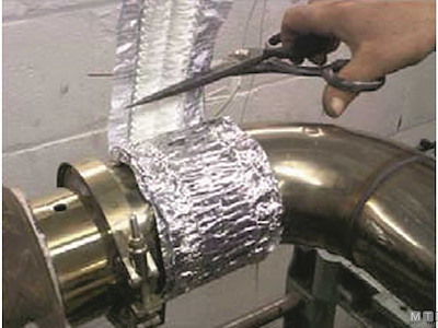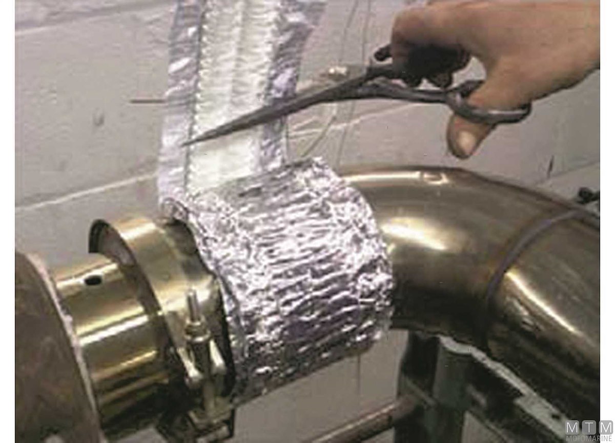 Nastro Termo isolante elastico Fiberglass-Metal resistente ad altissime temperature. Si compone di tessuto in fibra di Vetro accoppiato a una lamina di Alluminio che lo rende più flessibile. Dotato di proprietà elastiche può essere facilmente applicato anche alle curve degli scarichi. Normalmente 2/3 strati sono sufficienti per la maggior parte delle applicazioni di scarico Diesel. Temperatura massima di esercizio: 600 C°. A scelta si può aggiungere uno strato protettivo esterno di Nastro Elastomero Autoamalgamante resistente ad alte temperature per creare una superficie omogenea.