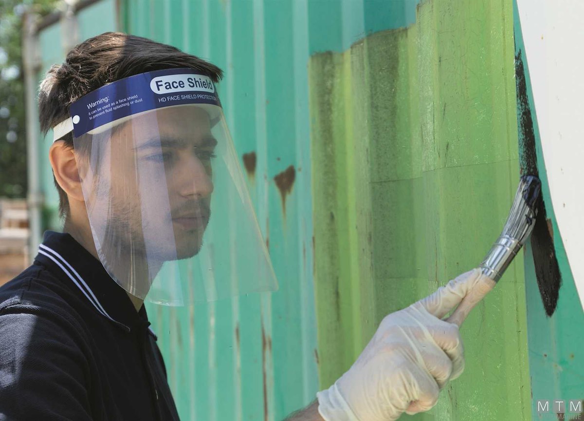 Visiera 33 x 22 cm completa di laccio elastico e frontino imbottito. Certificazione EN166CE.