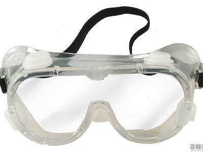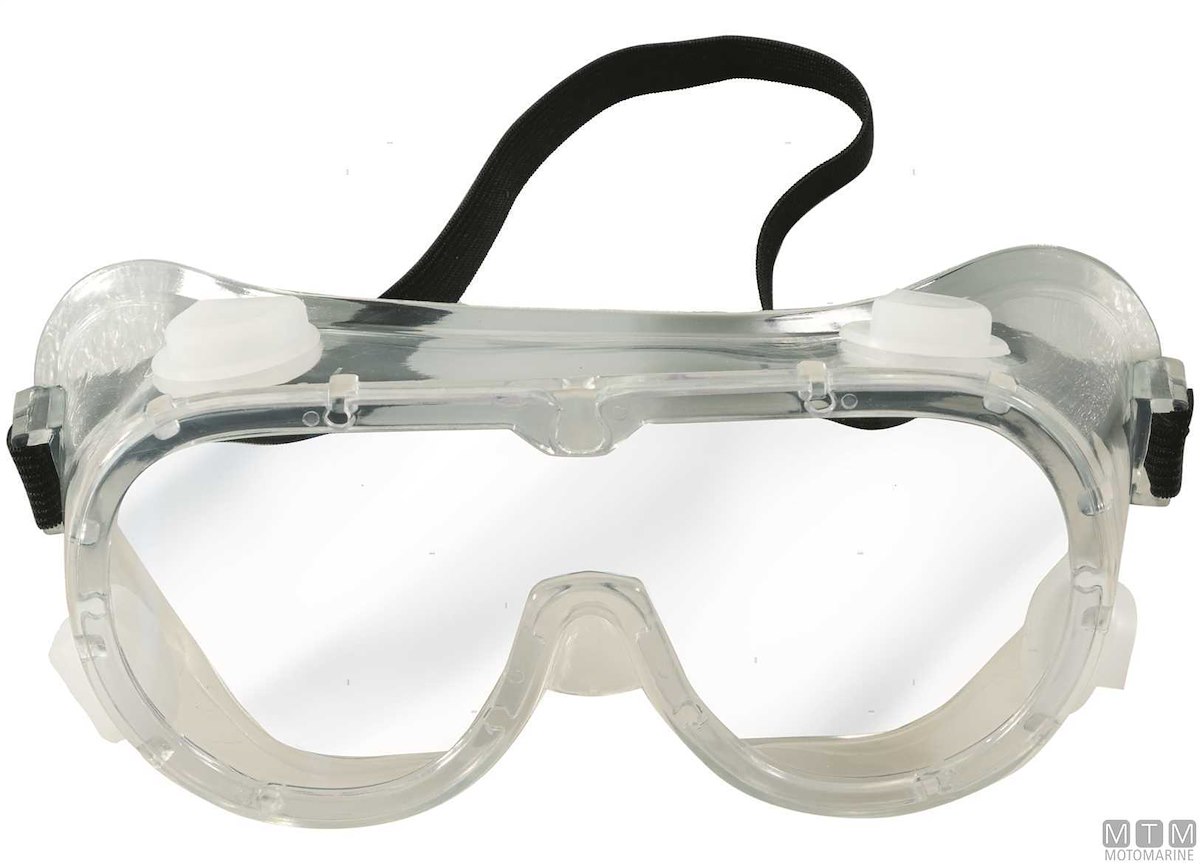 Gli occhiali sono completi di ripari laterali, laccio regolabile e valvole antiappannamento.