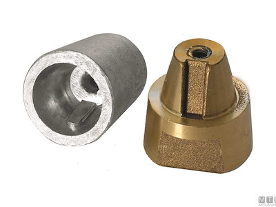 Ogive a cono mozzo in Ottone con Anodo di Zinco sostituibile. Con filettatura per asse portaelica.