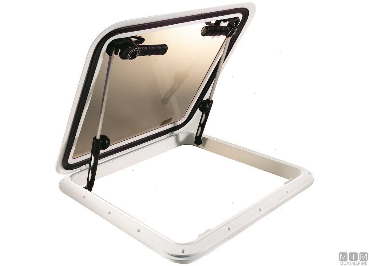 Osteriggio (passo uomo) con cornice in Saralon (resina di Polipropilene) praticamente indistruttibile, resistente a urti, solventi, agenti atmosferici e raggi UV. Vetro in Cristallo temperato per una perfetta trasparenza e resistenza a colpi e graffi. Completo di controcornice e maniglie di sicurezza esterne. Altezza su coperta 28 mm.