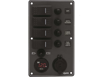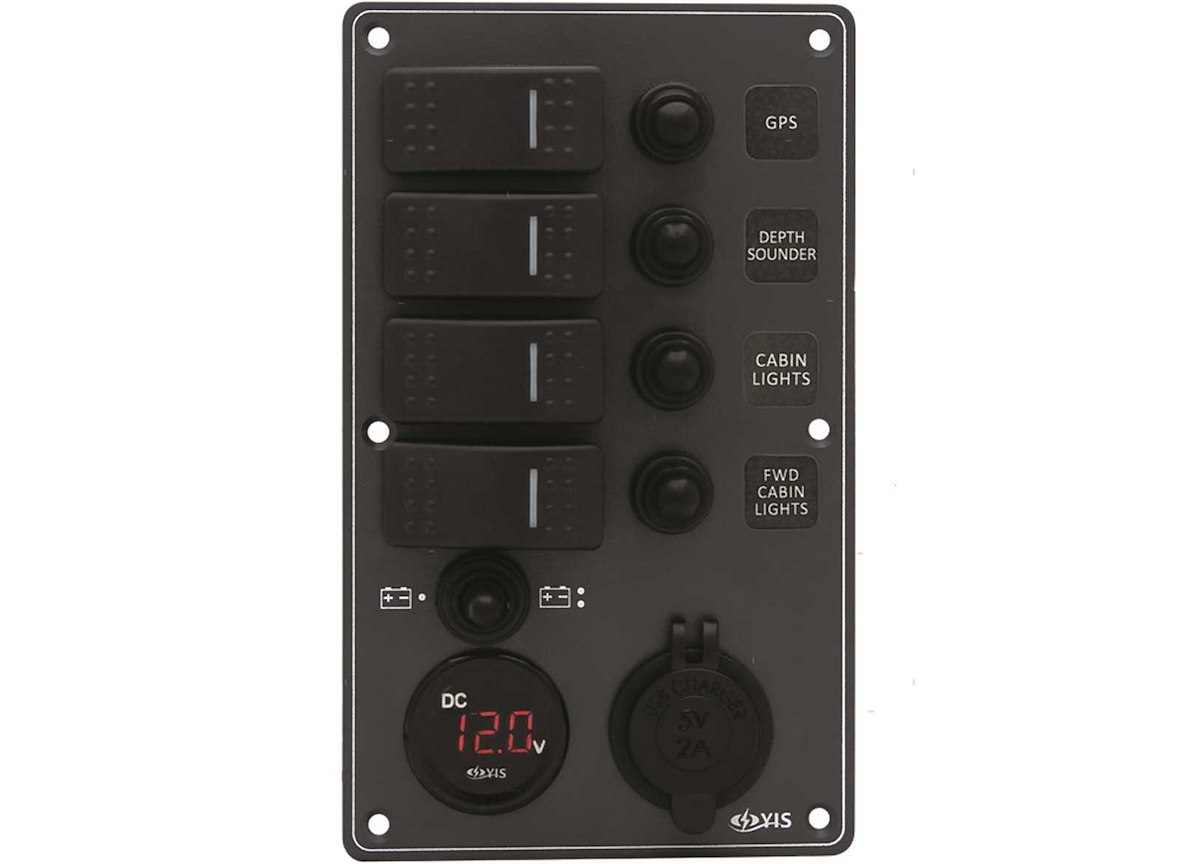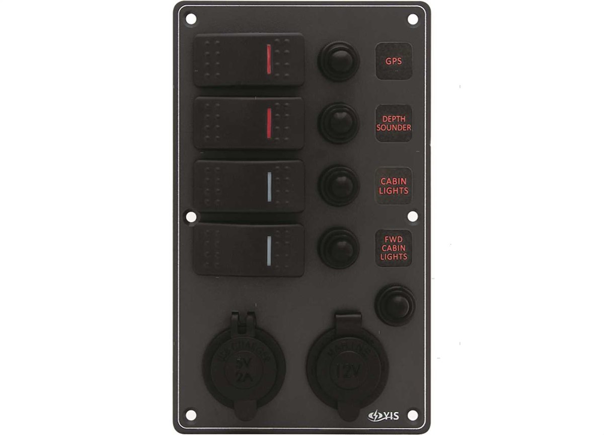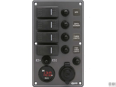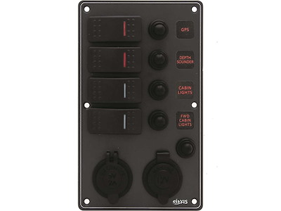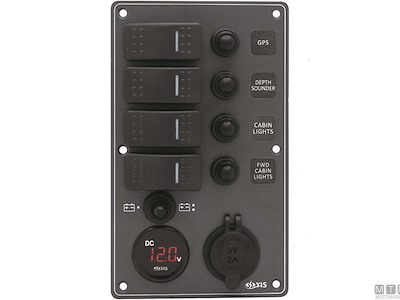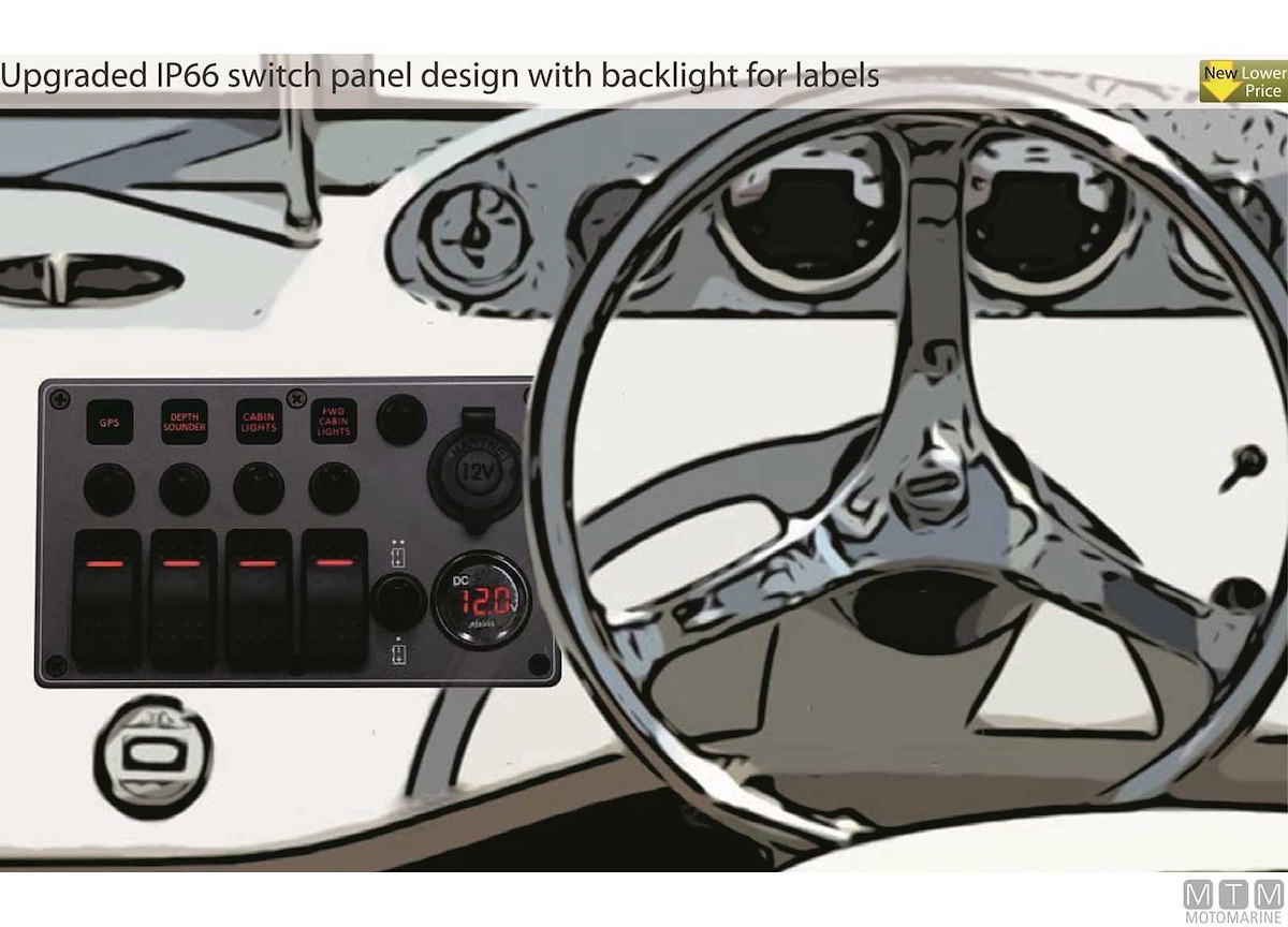 Pannelli 12/24V di qualità superiore in Alluminio compatti e impermeabili IP66. Precablati, con interruttori impermeabili dotati di spie LED rosse e valvole automatiche reinseribili con cappuccio di protezione. Il primo interruttore è (ON)-OFF per segnalazione acustica. Compresi di 30 etichette prestampate da applicare negli alloggi retroilluminati LED. Montaggio verticale oppure orizzontale.