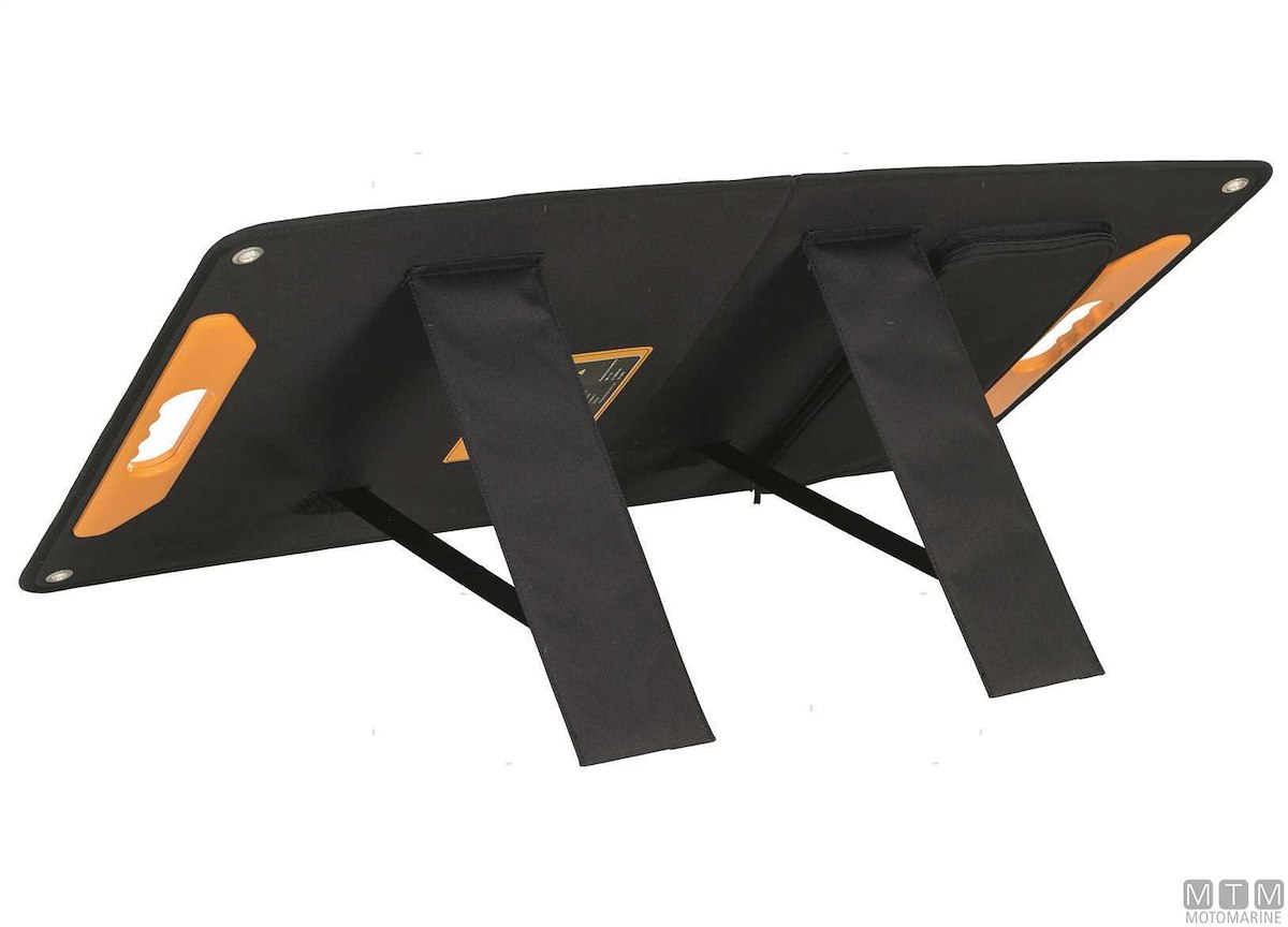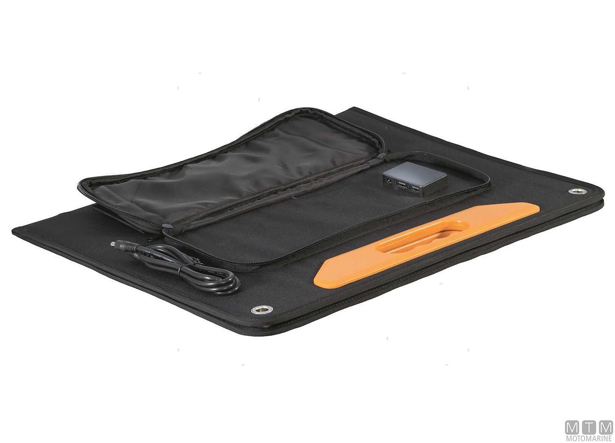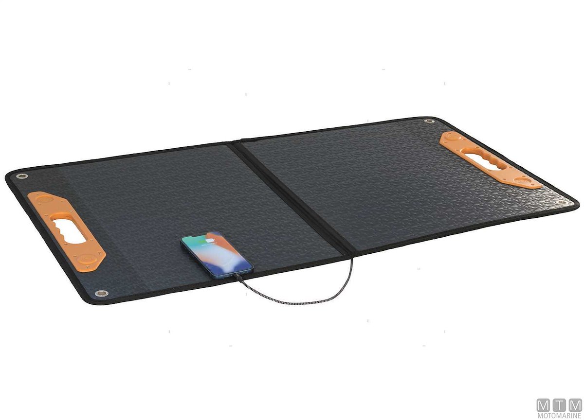 Pannelli solari pieghevoli leggeri e robusti con celle di silicio monocristallino di alta qualità e ad alta efficienza per una migliore resa che può raggiungere il 22%. Pieghevoli e portatili come una cartella con maniglia, grazie al treppiede in dotazione possono essere posizionati e orientati verso il sole, oppure fissati in posizione con nastro bi-adesivo o con viti. Utilizzati anche per caricare telefoni cellulari, laptop o altri dispositivi di ricarica USB.Completi di uscita cavo USB-A, 5V2A, caricabatteria per cellulare e computer-B, 5V3A.Con 2 cavi da 90 cm e connettori MC4. Da completare con regolatore di carica in base al voltaggio delle batterie da caricare (12 o 24V) e alla somma degli amperaggi (Imp) di ogni singolo pannello.