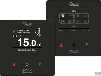 Pannello 12/24V per azionare il salpa ancora e controllare la lunghezza della catena calata. Corpo impermeabile IP67 a profilo ridotto con display grafico da 3,5" a colori in vetro temperato nero con tasti touch. Dotato di interfaccia CAN bus con presa a 5 poli, funzione discesa automatica, allarme in salita, caduta libera e recupero ancora a sensore rotto. Completo di sensore contacatena, coperchio di protezione, viteria, guarnizione e connettore con cavo alimentazione da 0,5 metri.