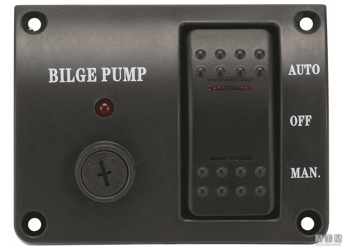 Pannello 12V con fusibile e interruttore illuminato a 3 posizioni: Automatic - Off - Manual con modulo "Fail-safe" (ritorno automatico su Off da Manual).