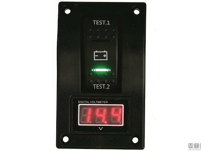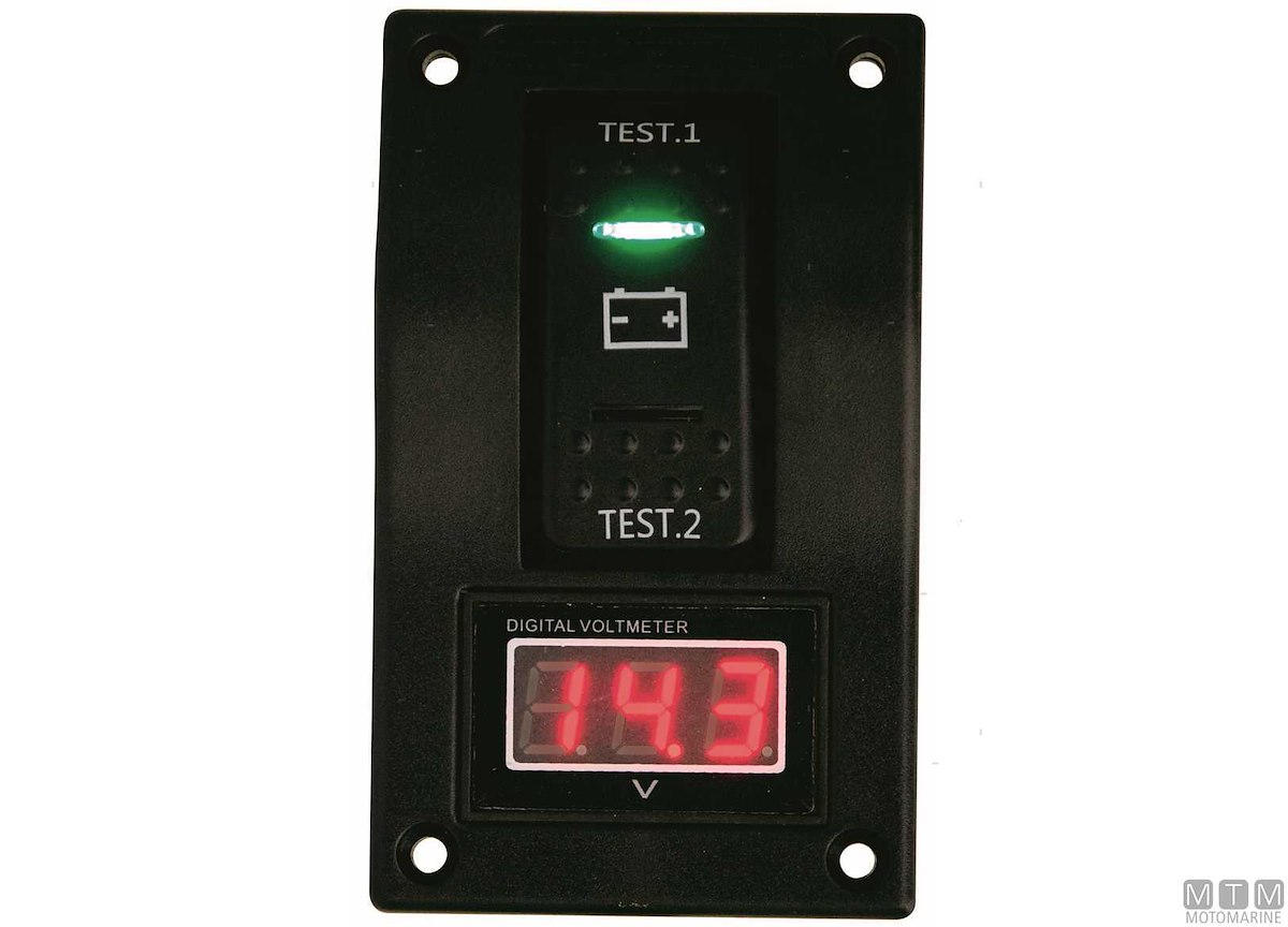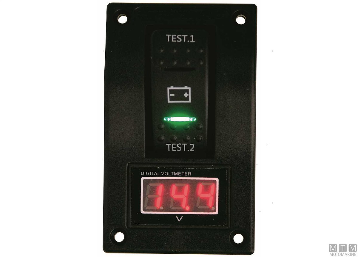 Pannello tester digitale per il controllo di 2 batterie. Plastica stabilizzata resistente UV con guarnizione in Nitrile. Con viti in Acciaio Inox ed etichetta prestampata.