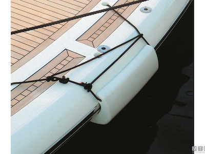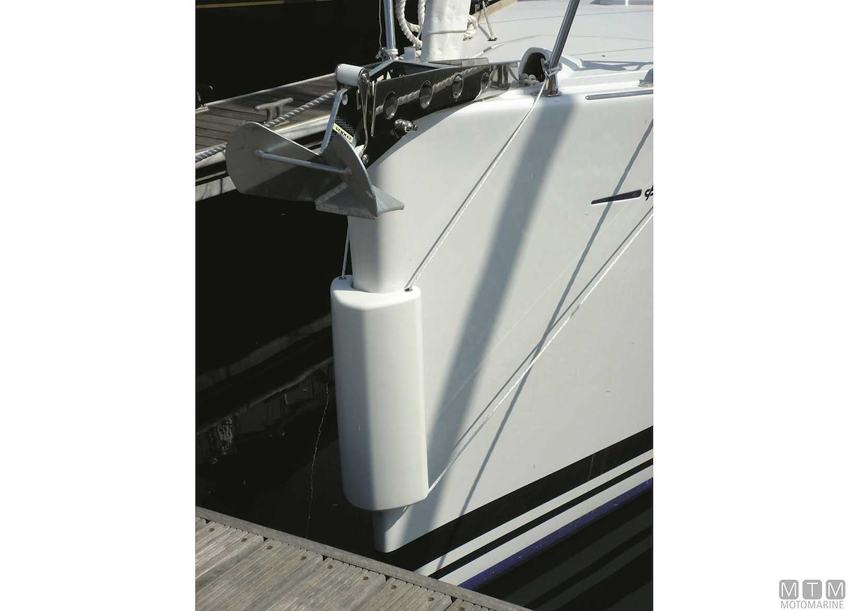 Paraprua/poppa specifico per barche a vela e catamarani, protezione totale quando si salpa l'ancora e quando si deve ormeggiare di prua o di poppa. Massa in Poliuretano resistente e morbido per il massimo assorbimento degli urti più violenti (non si sgonfia, non contiene aria). Con due fori passacima per un fissaggio sicuro a prua.