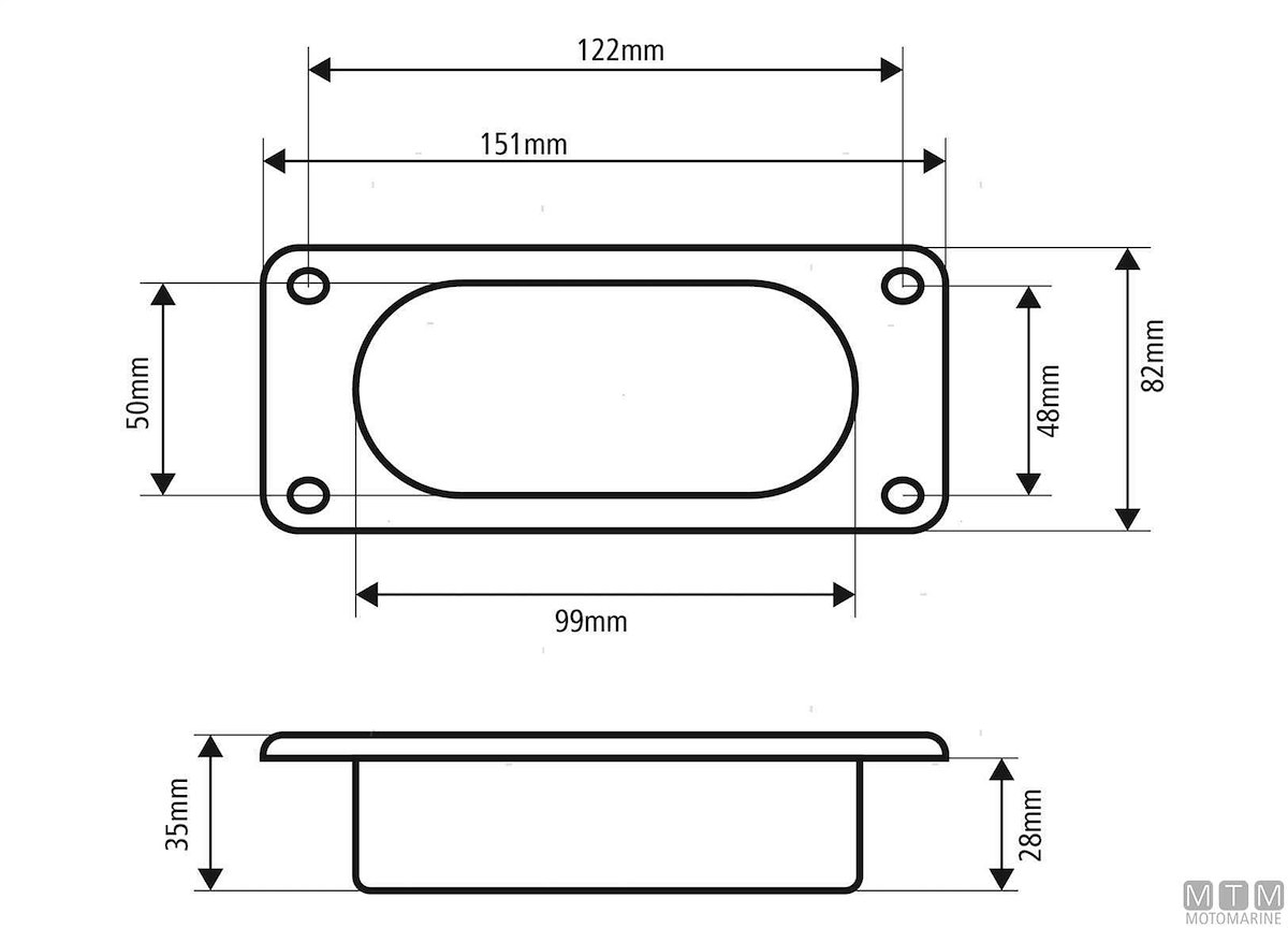 Passacavi a cubia in Acciaio Inox. L'altezza indicata è riferita all'incasso.