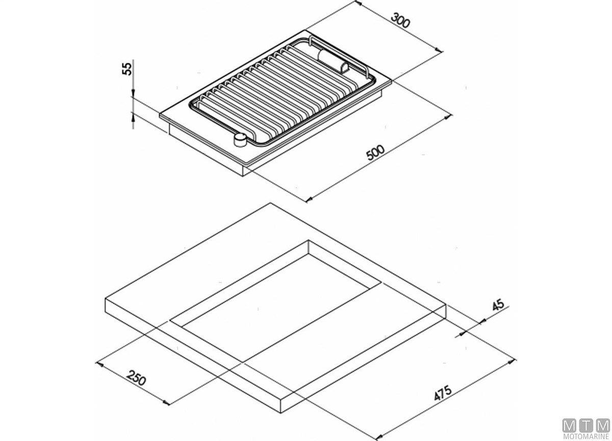 Piano cottura ad incasso in Acciaio Inox con barbeque elettrico da 2400 Watt - 220V.