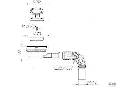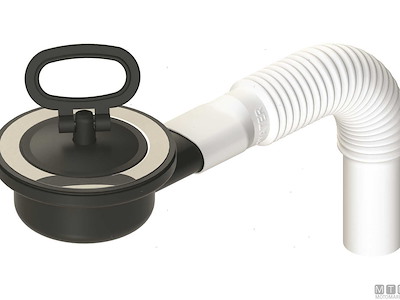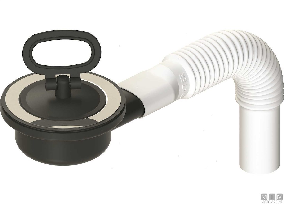 Piletta grande per lavelli con foro 50 mm. Completa di tappo e tubo scarico estensibile.