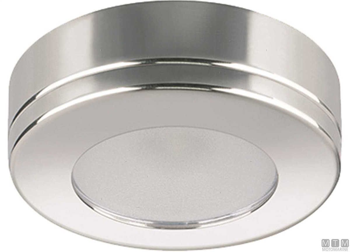 Plafoniera LED 2W IP66 per interni ed esterni con cornice in Acciaio Inox AISI316. Montaggio a superficie con molle. Voltaggio universale 9-32V con LED dimmerabile protetto da picchi e inversione.