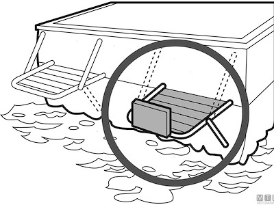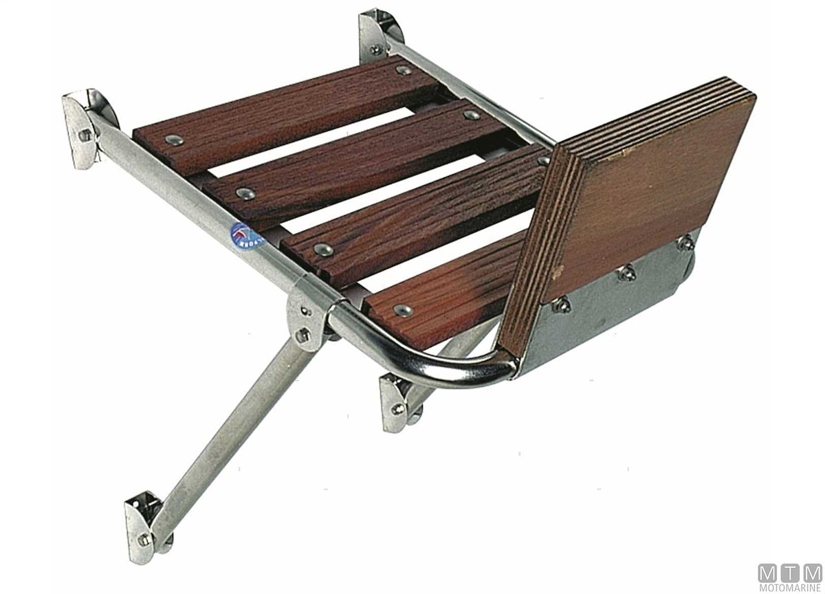 Plancetta di poppa in doghe di legno marino con telaio in Acciaio Inox e supporto motore.
