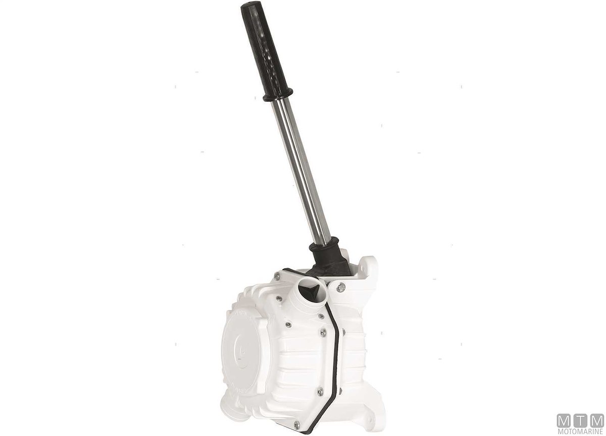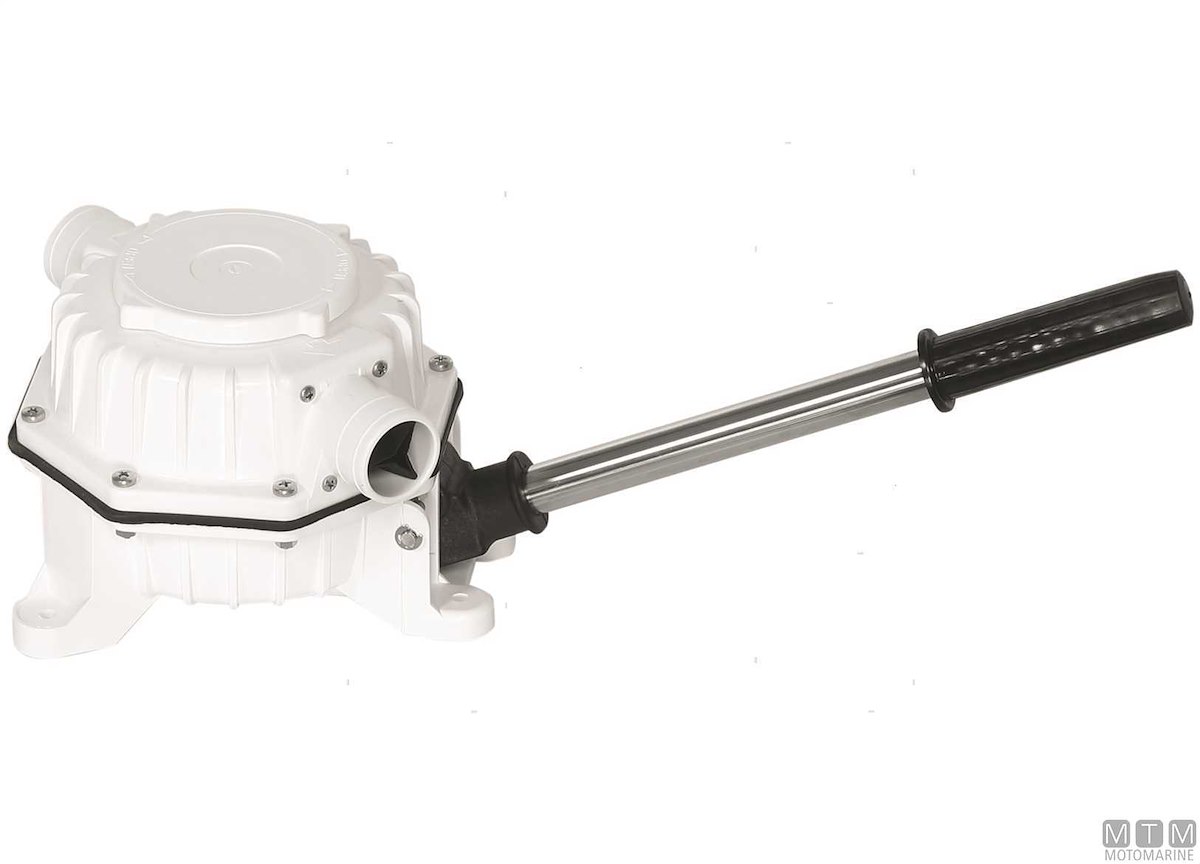 Pompa di sentina Ocean a membrana con leva sfilabile e valvola di non ritorno.