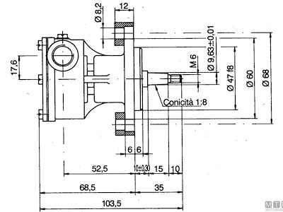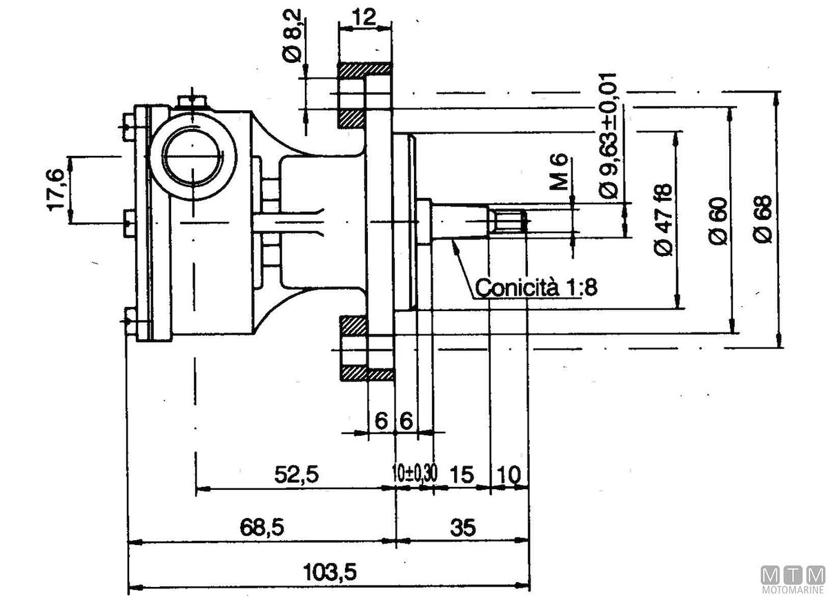 Pompa di raffreddamento in Bronzo con girante in Neoprene.