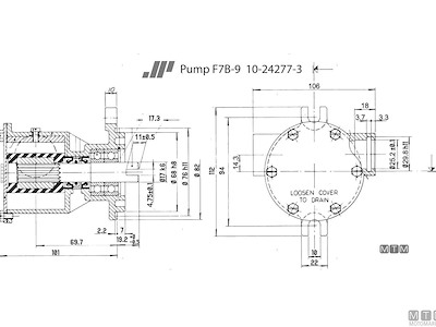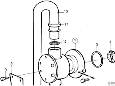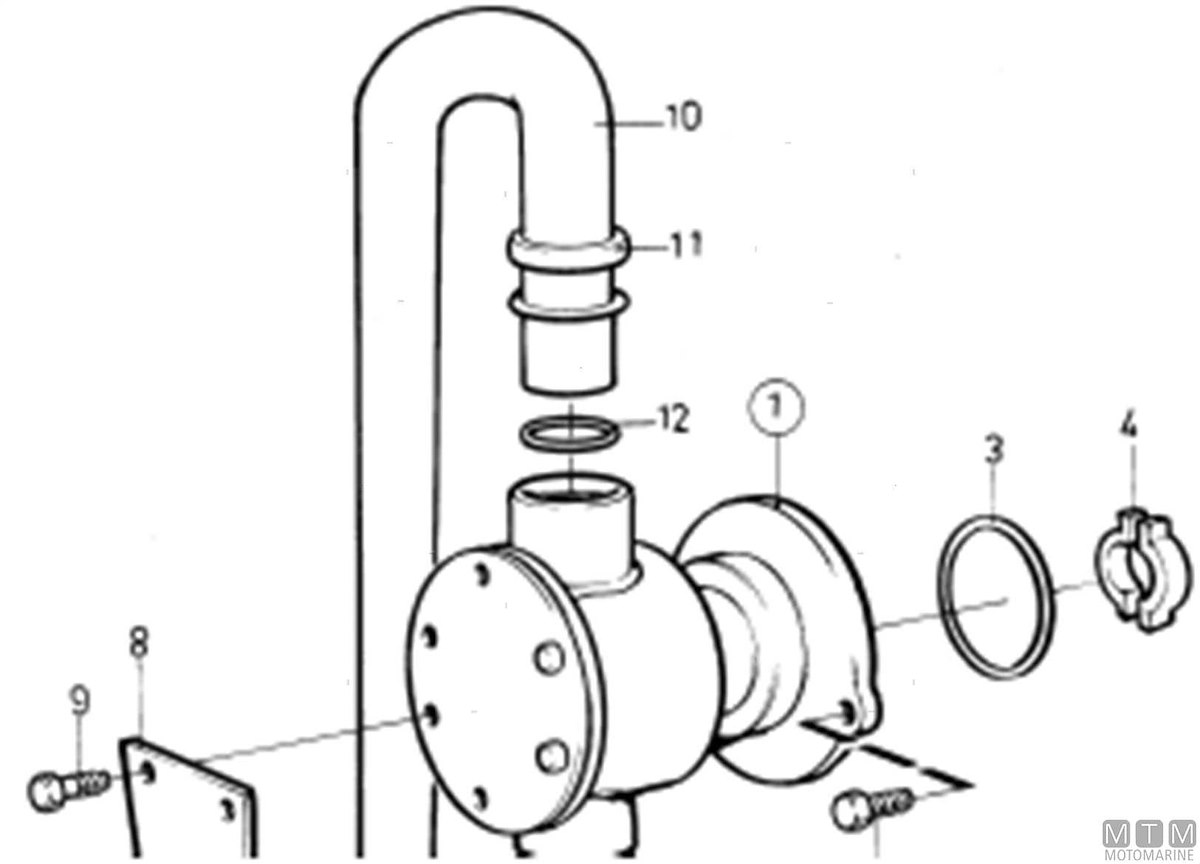 Pompa di raffreddamento in Bronzo con girante in Neoprene e bocche non filettate a connessione O-Ring.