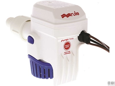 Pompe di sentina sommergibili automatiche Rule-Mate. Si attivano da sole in presenza di acqua in sentina. Dimensioni: 130 x 73 x H112