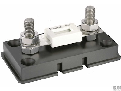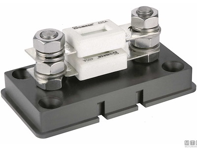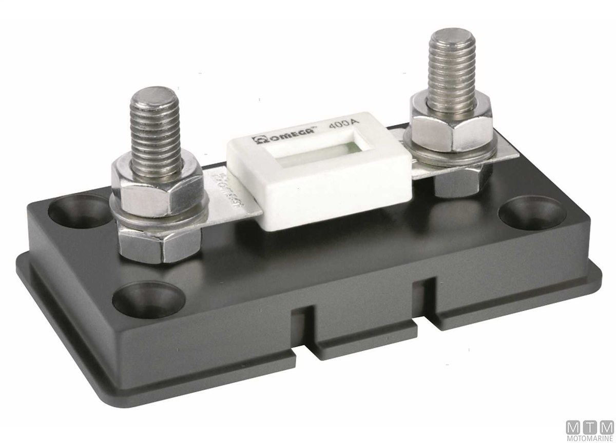 Porta fusibili ANL con base isolata e gabbia di protezione. Può contenere 1 o 2 fusibili ANL.