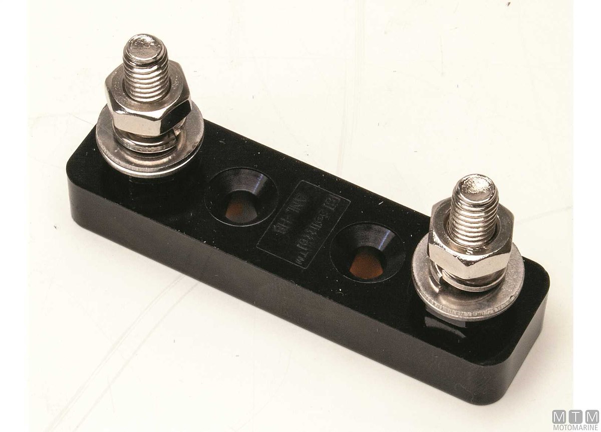 Porta fusibili ANL con base isolata. Può contenere 1 o 2 fusibili ANL.