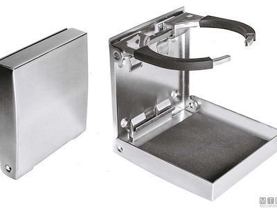 Portabicchieri e lattine pieghevole in Acciaio Inox.