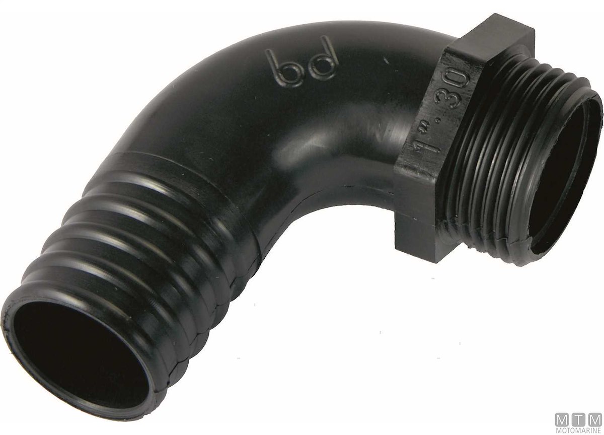 Portagomma a gomito 90° maschio in Polipropilene (PP) atossico per applicazioni nautiche.