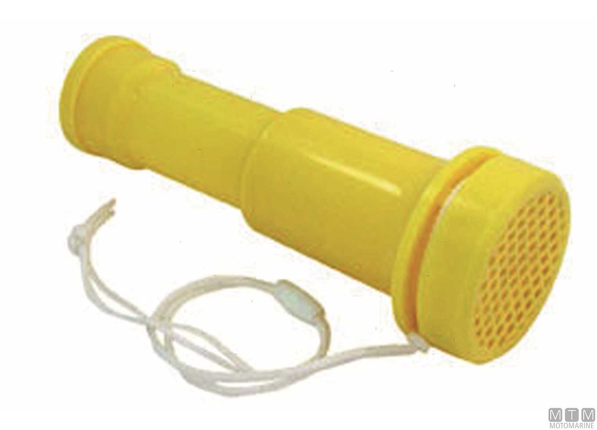 Corno da nebbia in Plastica rinforzata dal suono molto potente e penetrante. Il suono si ottiene soffiando nel forellino presente di lato.